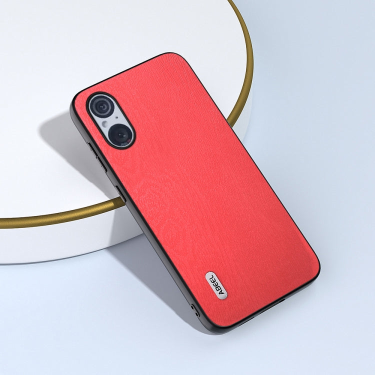 Funda para Sony Xperia 5 V Abeel PU con Textura de Madera (Rojo)
