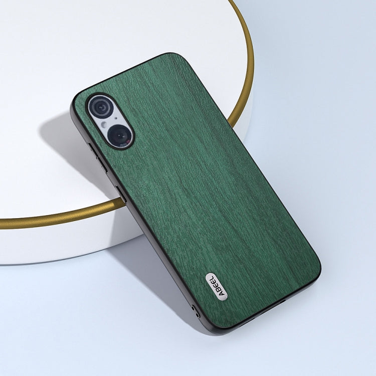 Funda para Sony Xperia 5 V Abeel PU con Textura de Madera (Verde)