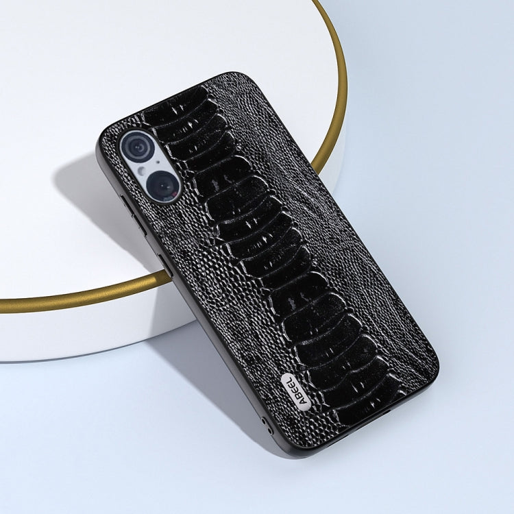 Funda para Sony Xperia 5 V Abeel Serie Weilai de Cuero Genuino (Negro)