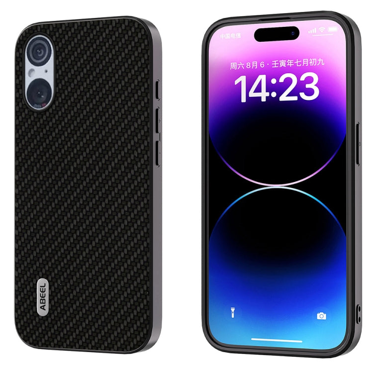 Funda Protectora Abeel para Sony Xperia 5 V con Textura de Fibra de Carbono (Negro)