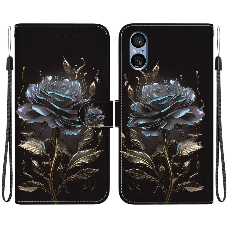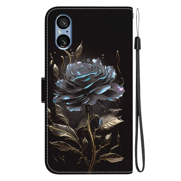 Funda de Cuero para Sony Xperia 5 V con Dibujo Coloreado y Textura de Cristal (Rosa Negra)