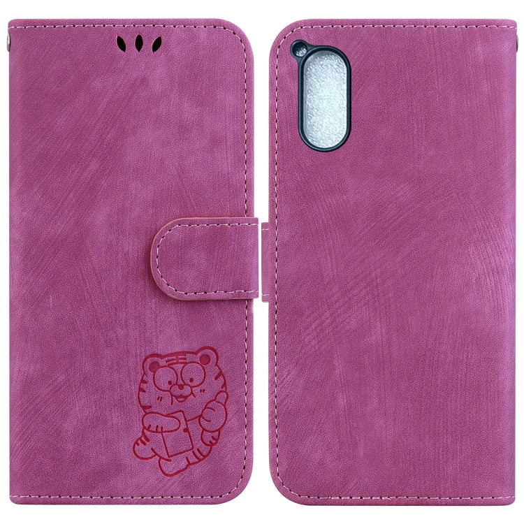 Funda de Cuero Sony Xperia 5 V con Relieve Little Tiger (Rojo Rosa)