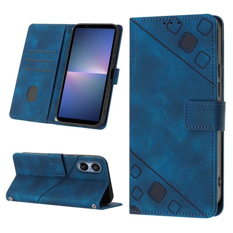 Funda de Cuero para Sony Xperia 5 V con Relieve y Sensación de Piel (Azul)