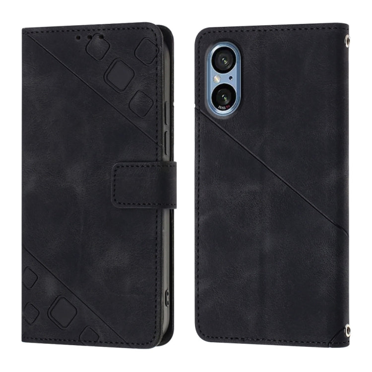 Funda de Cuero para Sony Xperia 5 V con Relieve y Sensación de Piel (Negro)