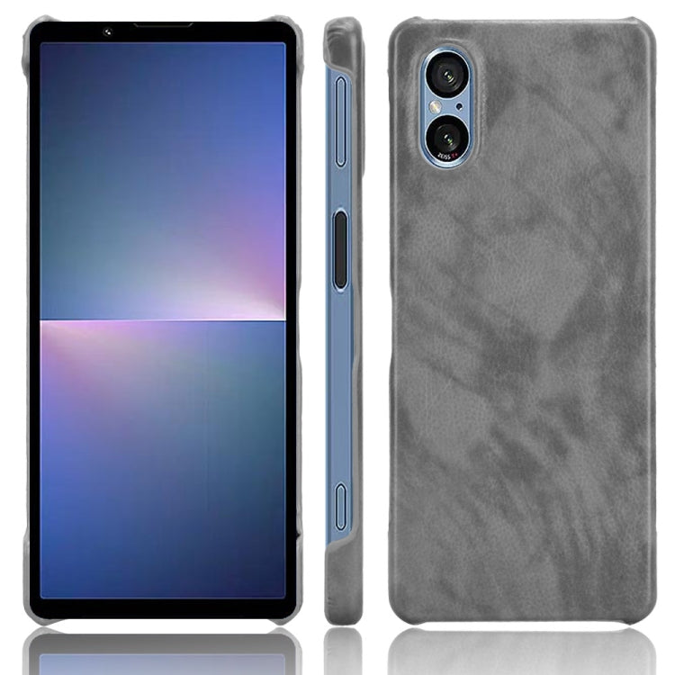 Funda para Sony Xperia 5 V con Contraportada Textura Litchi (Gris)