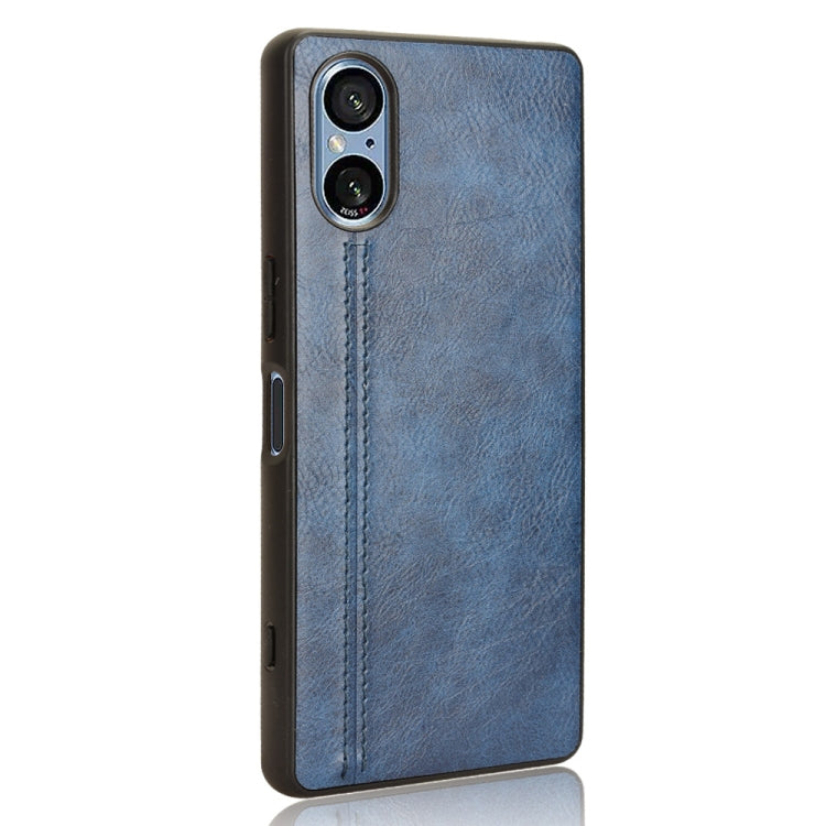 Funda para Sony Xperia 5 V con Patrón de Vaca Costura PC + PU + TPU (Azul)