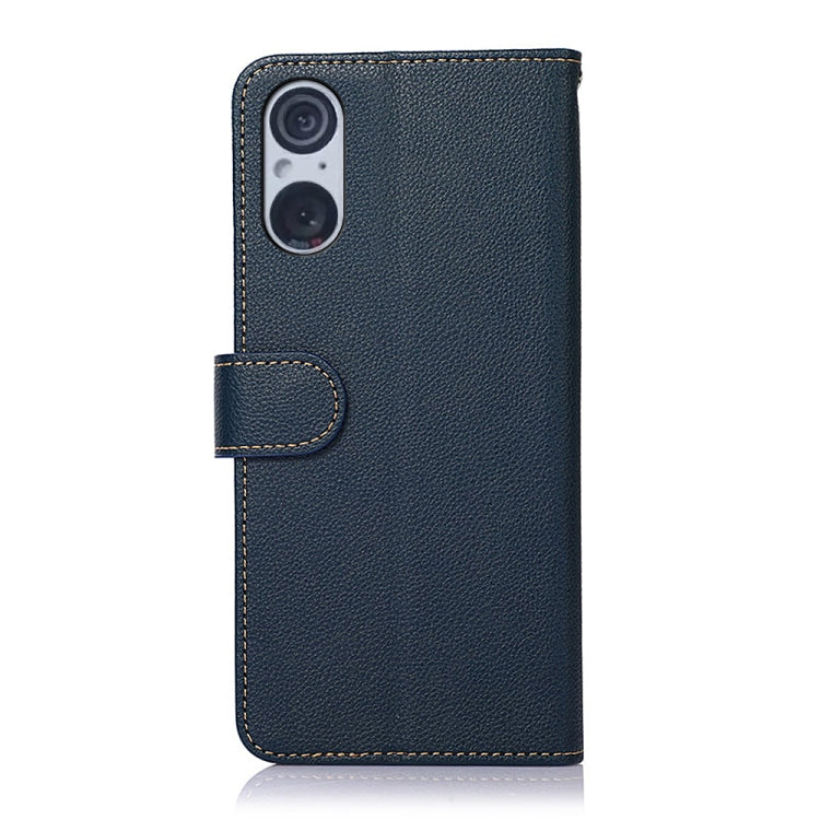 Funda para Sony Xperia 5 V Khazneh Litchi Texture con Protección RFID de Cuero (Azul)