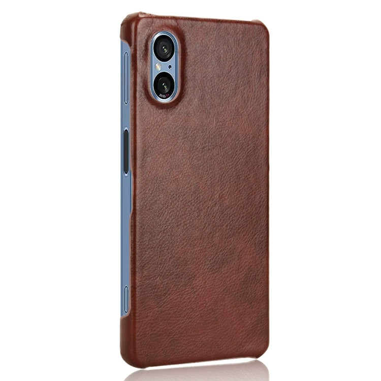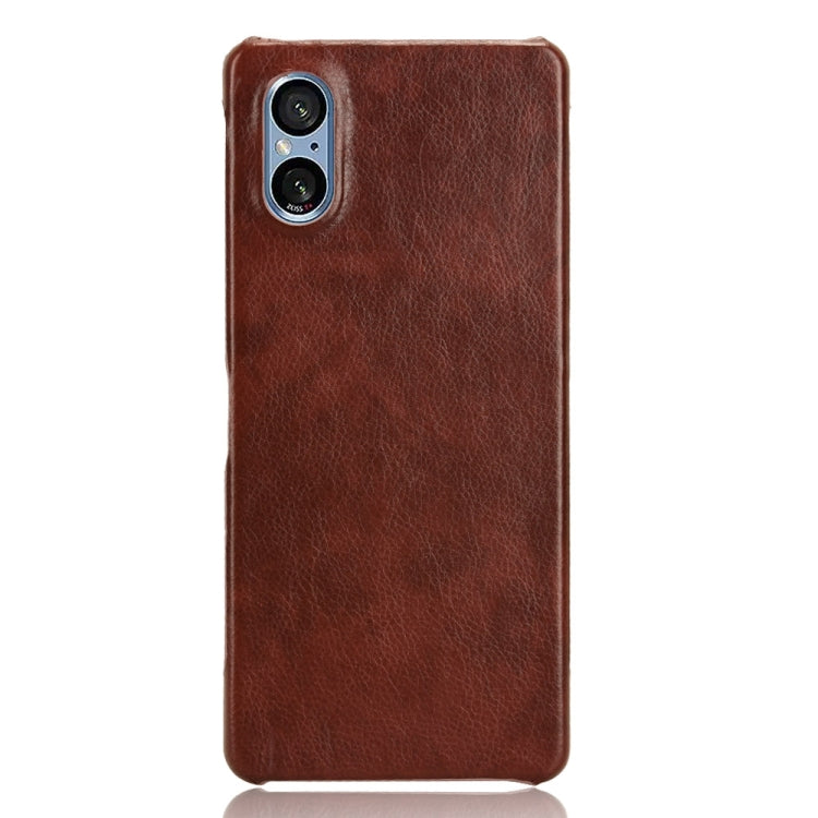 Funda para Sony Xperia 5 V con Contraportada Litchi Texture (Marrón)