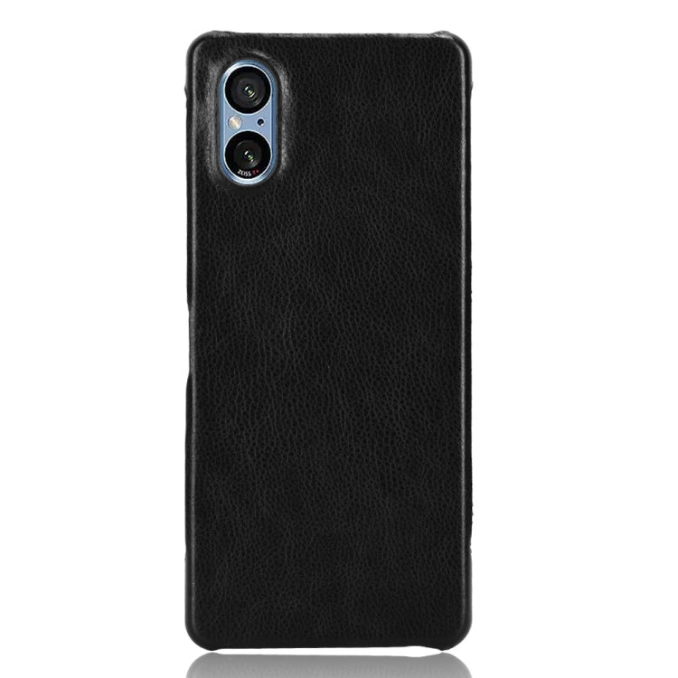 Funda para Sony Xperia 5 V con Contraportada Litchi Texture (Negro)
