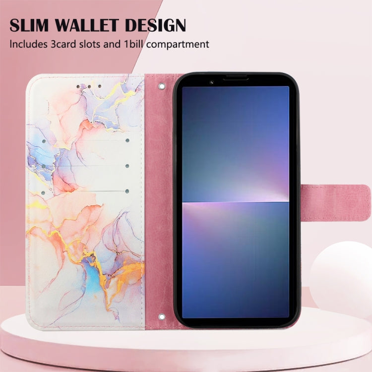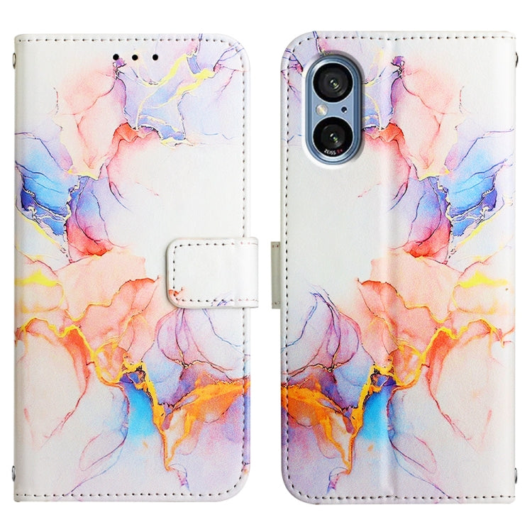 Funda de Cuero con Tapa para Sony Xperia 5 V Pt003 con Patrón Mármol (Galaxy Marble White)