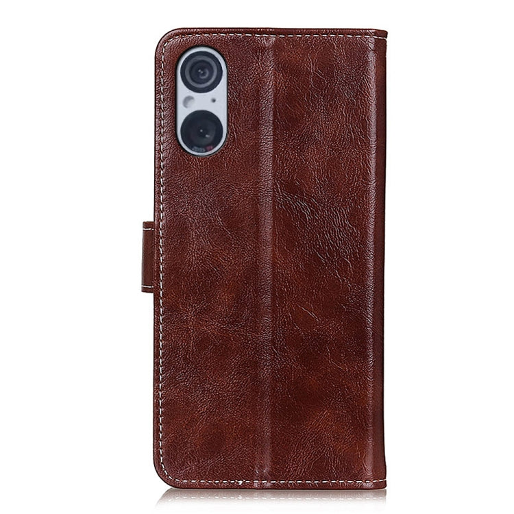 Funda de Cuero con Tapa Horizontal para Sony Xperia 5 V Retro Crazy Horse (Marrón)
