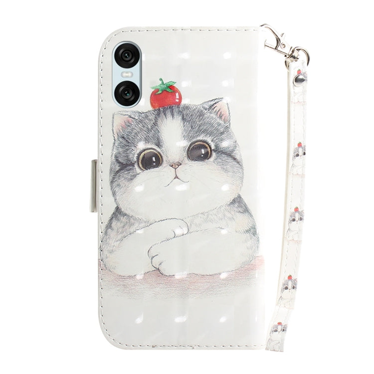 Funda para Sony Xperia 5 Vi de Cuero con Tapa Horizontal y Diseño 3D Lindo Gato