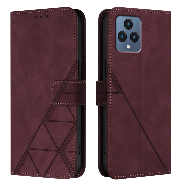 Funda de Cuero Crossbody para T-Mobile Revvl 6 / 6X 5G con Tapa En Relieve 3D (Rojo Vino)