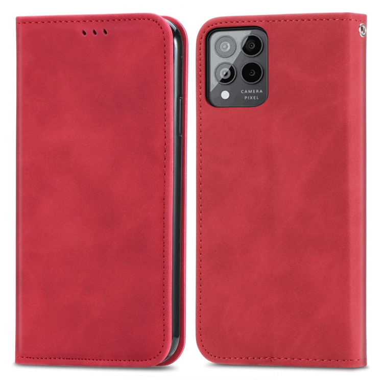 Funda Magnética de Cuero para T-Mobile Revvl 6 Pro 5G Retro Skin Feel (Rojo)