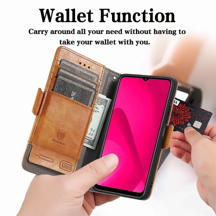 Funda de Cuero Caseneo para T-Mobile Revvl 7 5G con Hebilla Magnética Dual (Caqui)