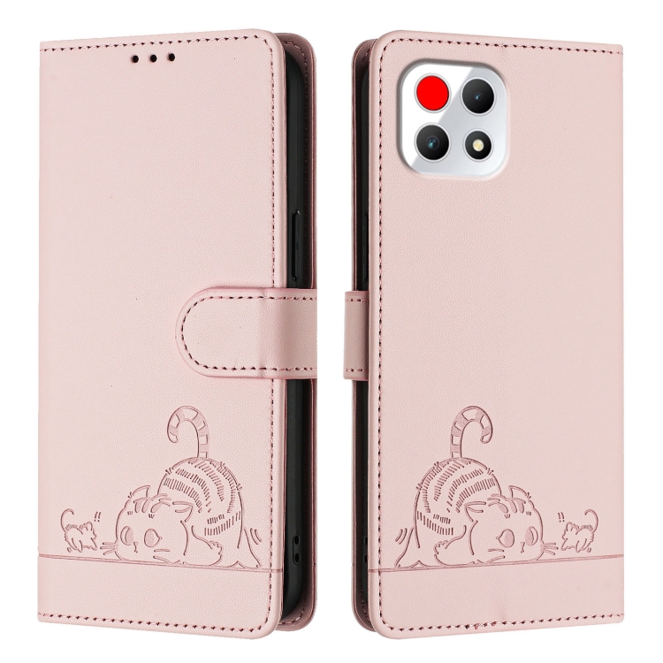 Estuche para teléfono T-Mobile Revvl 7 5G Cat Rat cuero RFID con cordón (Rosa)
