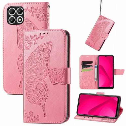 Funda para Teléfono T-Mobile Revvl 7 5G Cuero Relieve Flor y Mariposa (Rosa)