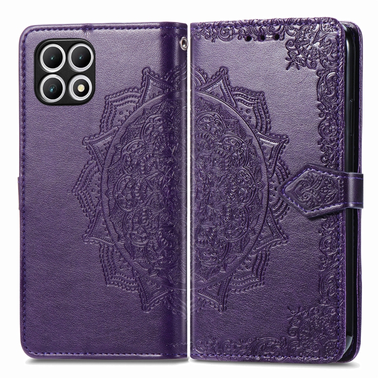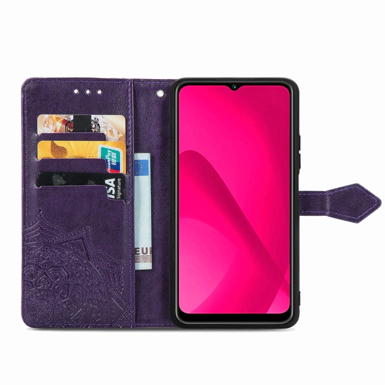 Funda para teléfono T-Mobile Revvl 7 5G Cuero con Relieve de Flor de Mandala (Púrpura)