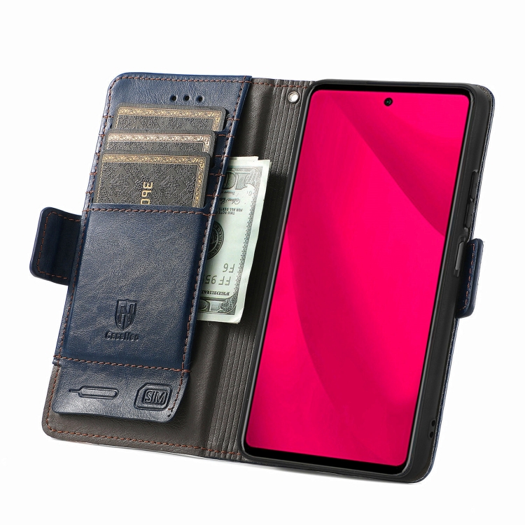 Funda de Cuero Caseneo para T-Mobile Revvl 7 Pro 5G con Hebilla Magnética Dual (Azul)