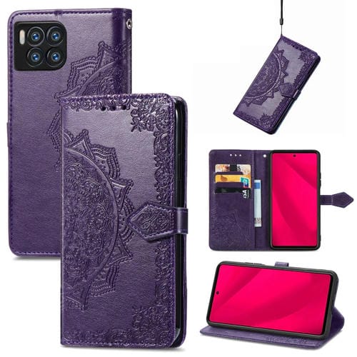 Funda para Teléfono T-Mobile Revvl 7 Pro 5G Cuero con Relieve Flor de Mandala (Púrpura)