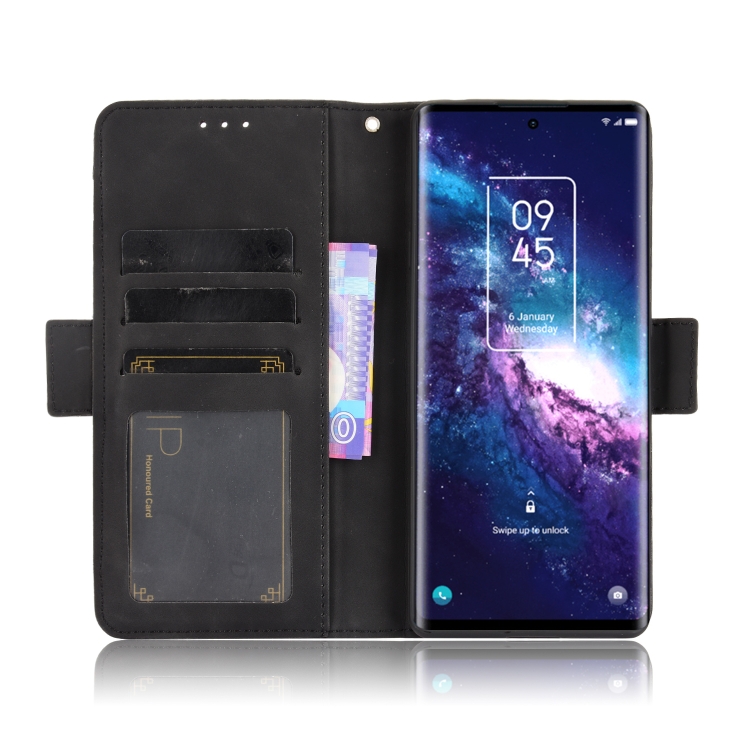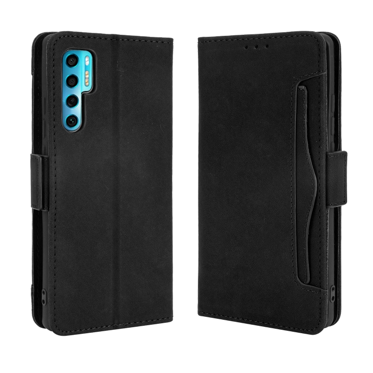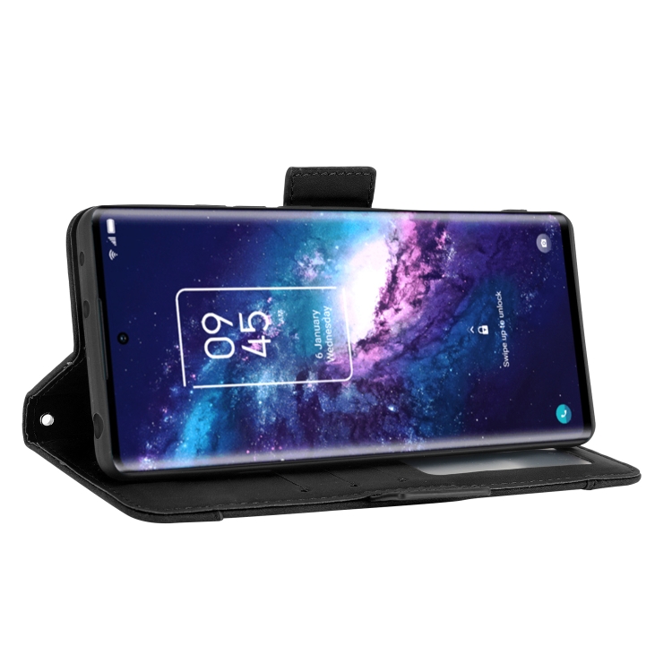 Funda de Cuero para TCL 20 Pro 5G con Patrón de Pantorrilla de Becerro, Soporte, Ranuras para Tarjetas y Marco de Fotos (Negro)