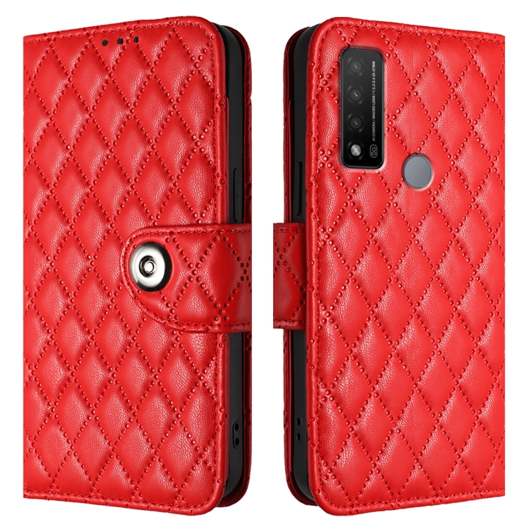 Funda para TCL 20 R 5G de Cuero con Tapa Textura Romboidal y Cordón (Rojo)