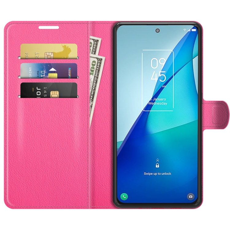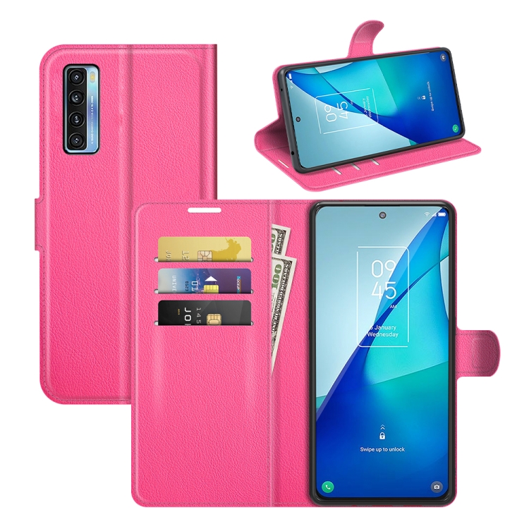 Funda Protectora Horizontal Flip para TCL 20S / 20 5G / 20L con Soporte, Tragamonedas y Billetera (Rose Rojo)