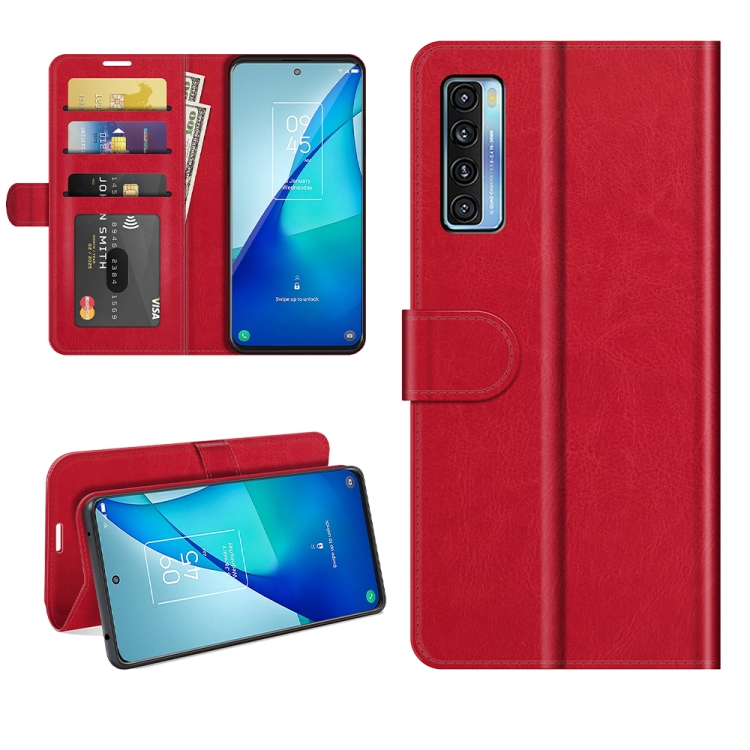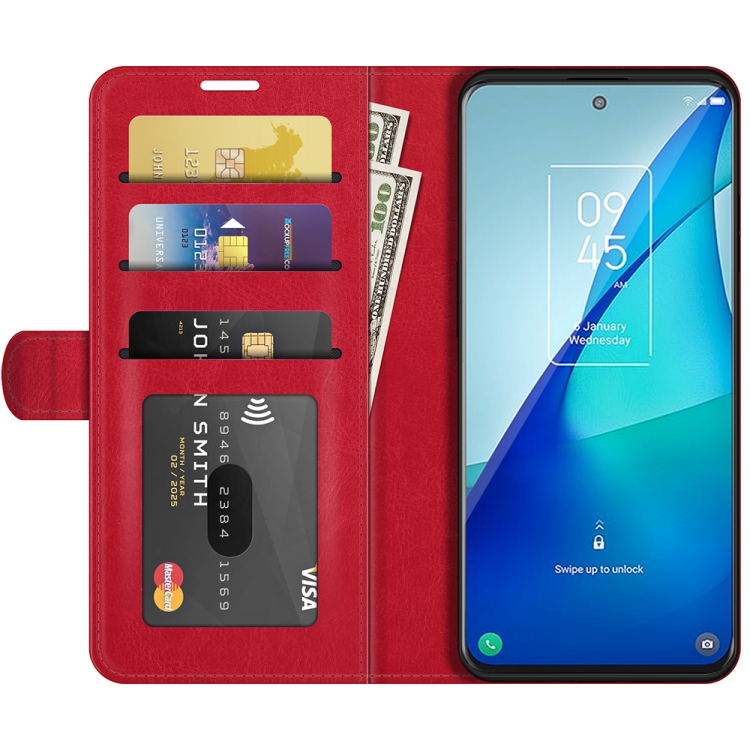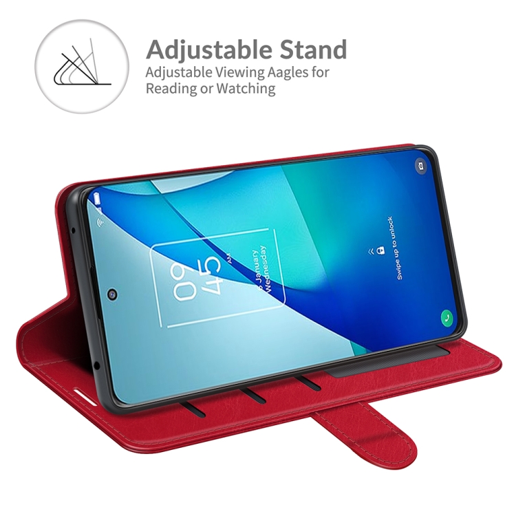 Funda Protectora Flip Horizontal TCL 20S 20 5G 20L R64 con Soporte y Ranuras para Tarjetas (Rojo)