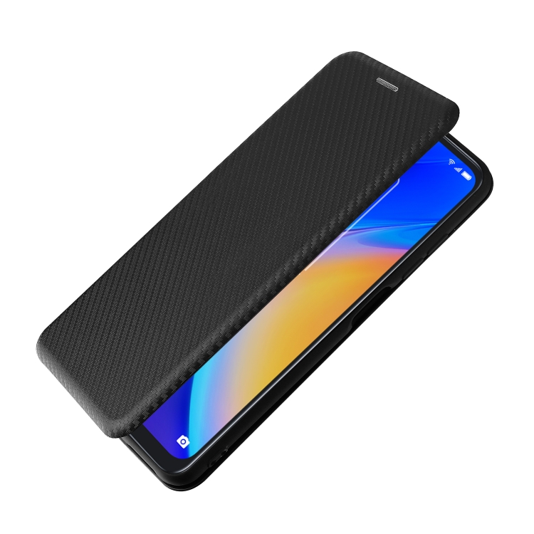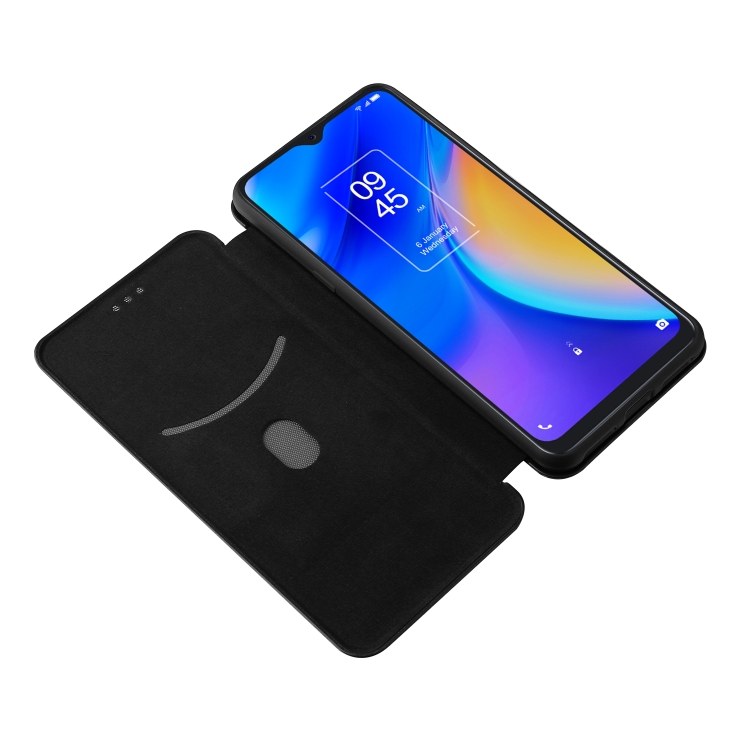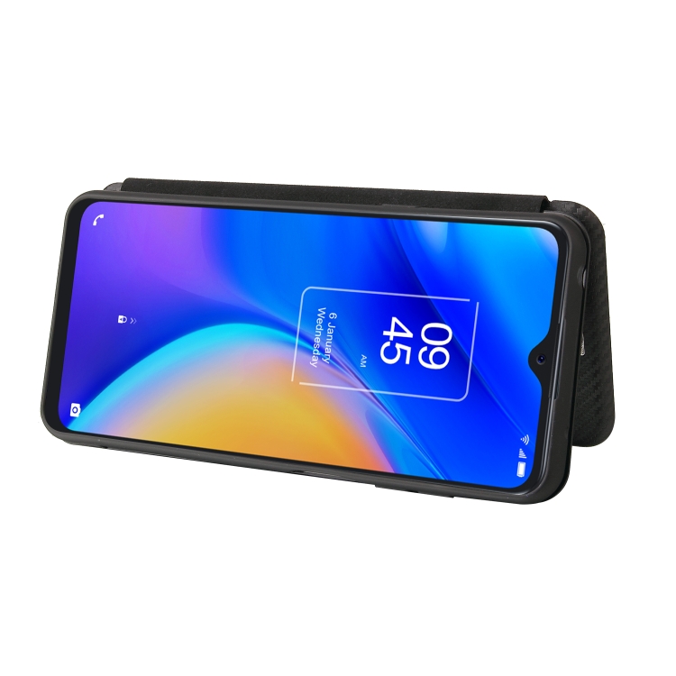 Funda para TCL 20S Textura Fibra de Carbono Magnético Horizontal Flip TPU + PC Cuero PU con Ranura para Tarjeta (Negro)