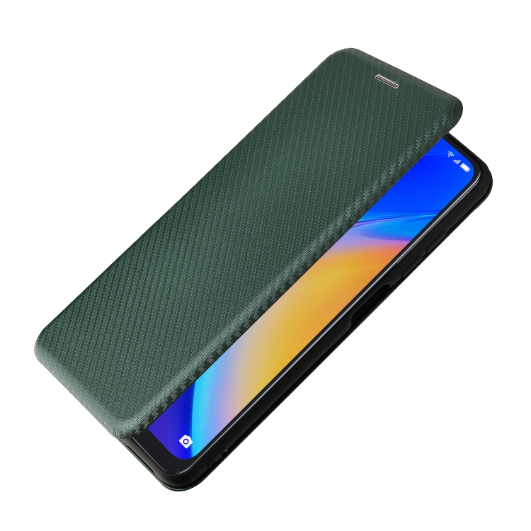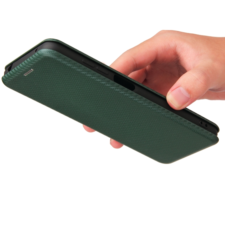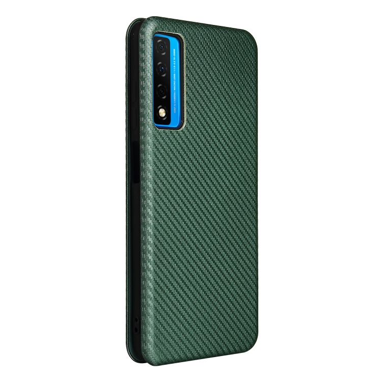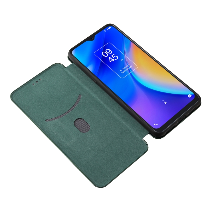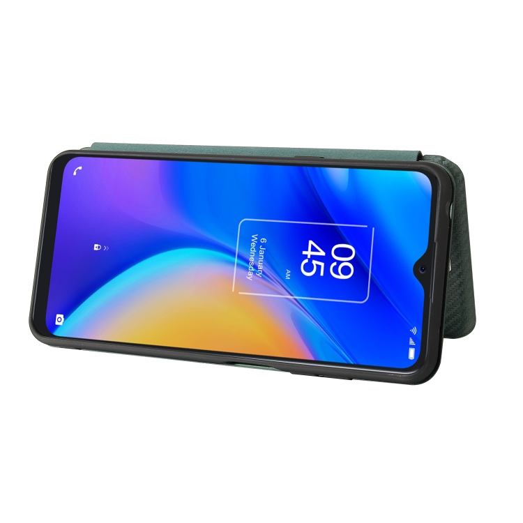 Funda para TCL 20S Textura Fibra de Carbono Magnético Flip TPU + PC + Cuero PU con Ranura (Verde)