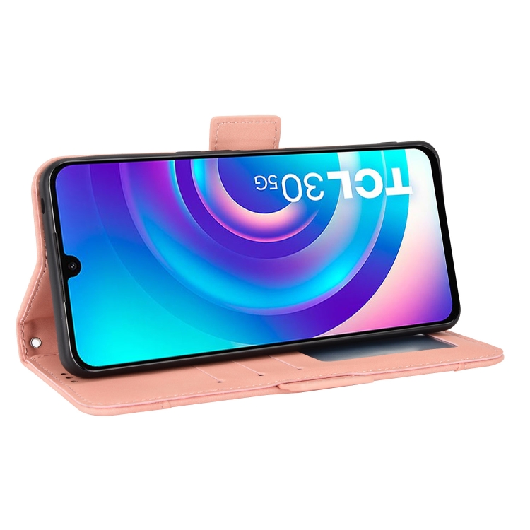 Funda para TCL 30 5G / 30+ Skin Feel con Ranuras para Tarjeta y Textura de Cuero (Rosa)