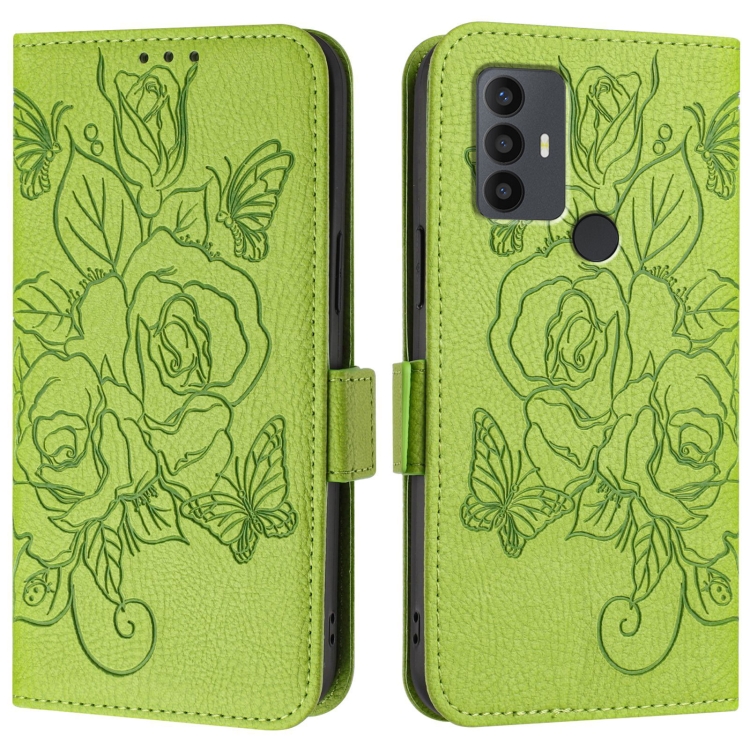 Funda de Cuero Antirrobo RFID para TCL 30 Se con Relieve (Verde)