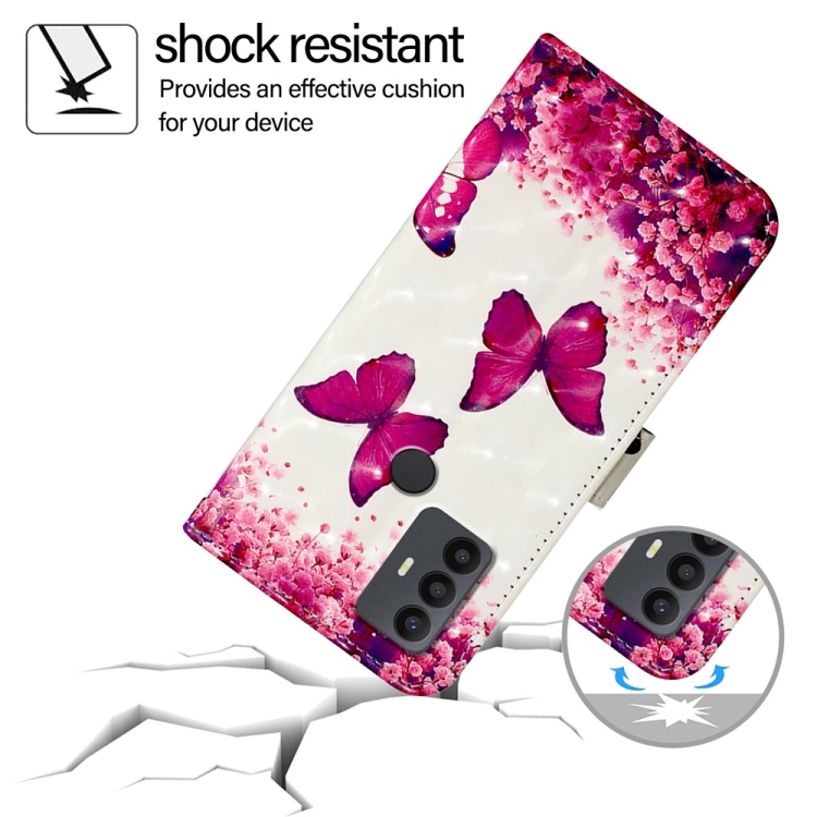 Funda para TCL 30 Se de Cuero con Tapa Horizontal y Pintura 3D Mariposa Rosa