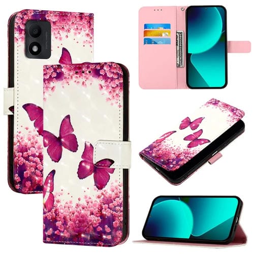 Funda de Cuero para TCL 303 con Tapa Horizontal y Pintura 3D (Mariposa Rosa)