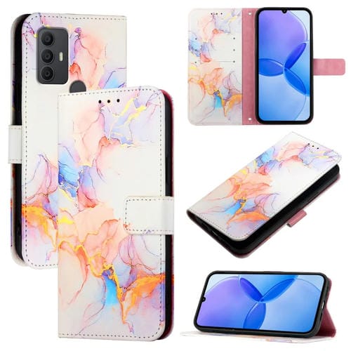 Funda de Cuero con Tapa para TCL 305/306/30 SE AL02 PT003 con Patrón Mármol (Blanco)