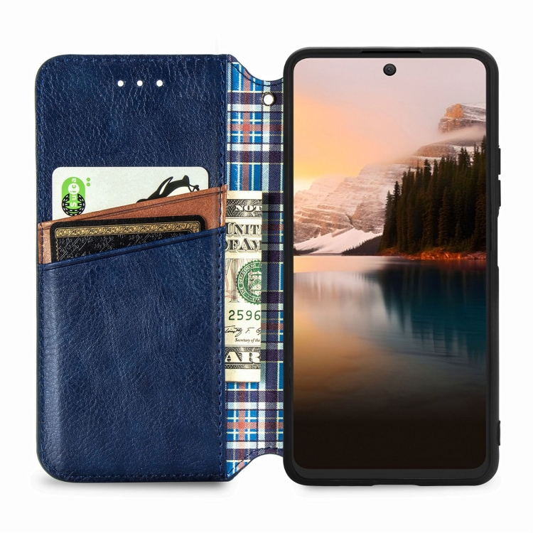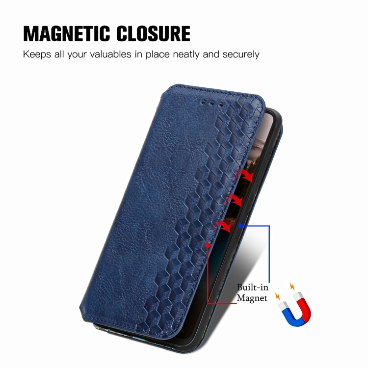 Funda de Cuero Magnético para TCL 40 Nxtpaper 5G Cubic Grid (Azul)