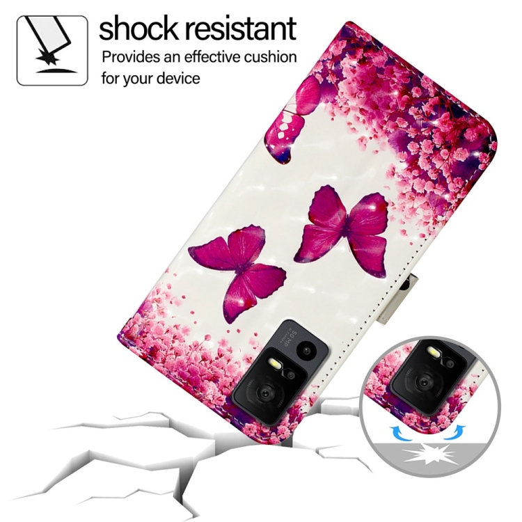Funda de Cuero con Tapa Horizontal para TCL 40 R 5G Pintura 3D (Mariposa Rosa)