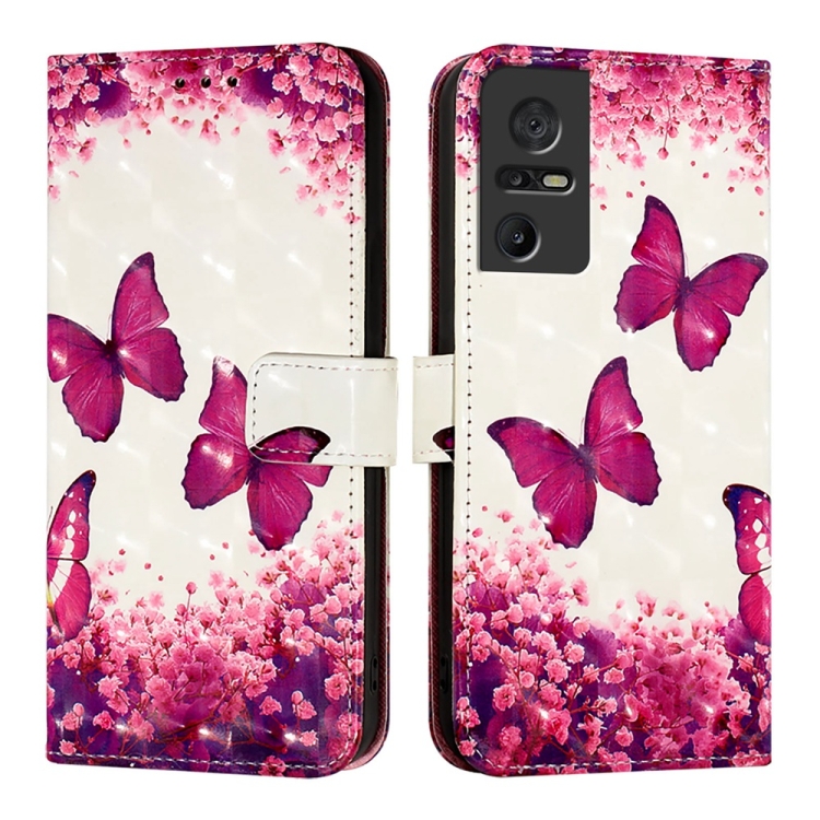 Funda para TCL 40 Se de Cuero con Tapa Horizontal y Pintura 3D (Mariposa Rosa)