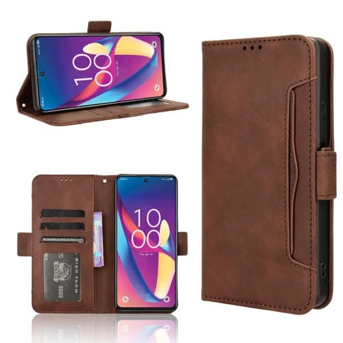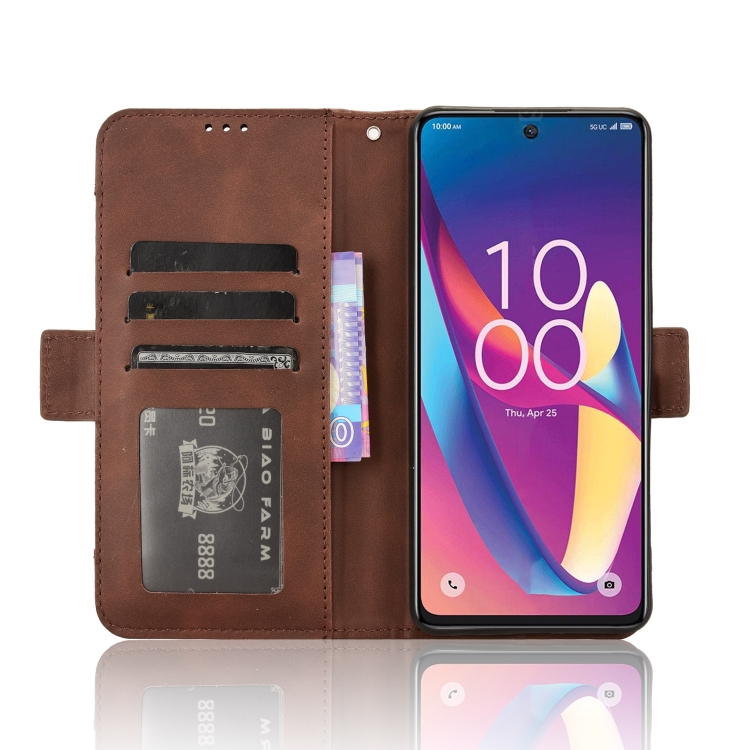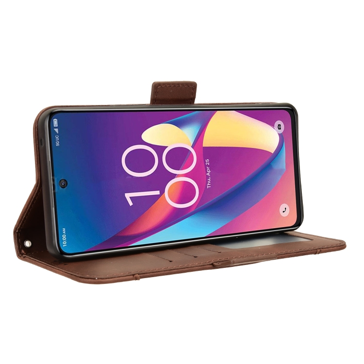 Funda de Cuero para TCL 50 XL 5G con Textura Becerro y Ranuras para Tarjetas (Marrón)