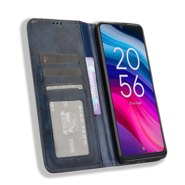 Funda para TCL 505 4G de Cuero con Textura Retro y Hebilla Magnética (Azul)