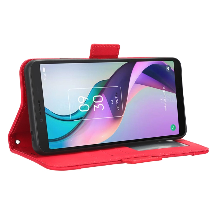 Funda de Cuero para TCL Ion X Skin Feel con Ranuras para Tarjetas (Rojo)