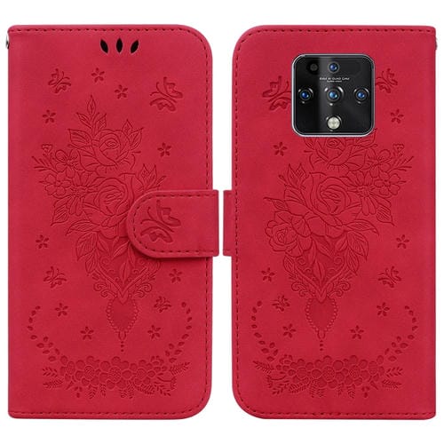 Funda para Tecno Camon 16 Gran Butterfly Rose Foothip en Cuero Relieve (Rojo)