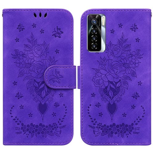 Funda para Tecno Camon 17 Pro Butterfly Rose Foothip en Relieve de Cuero (Púrpura)