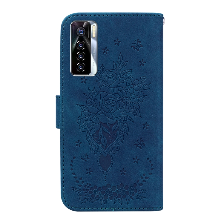Funda de Cuero Rossed Butterfly para Tecno Camon 17 Pro (Azul)