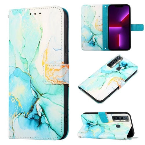 Funda de Cuero para Tecno Camon 17 Pt003 con Patrón de Mármol (Verde)