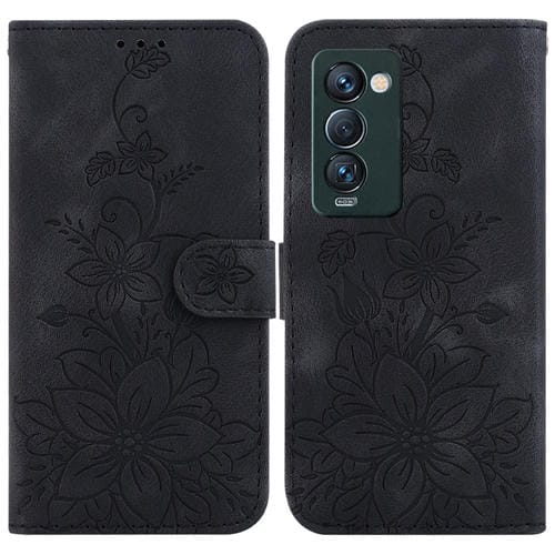 Funda de Cuero para Tecno Camon 18 Premier Lily en Relieve (Negro)