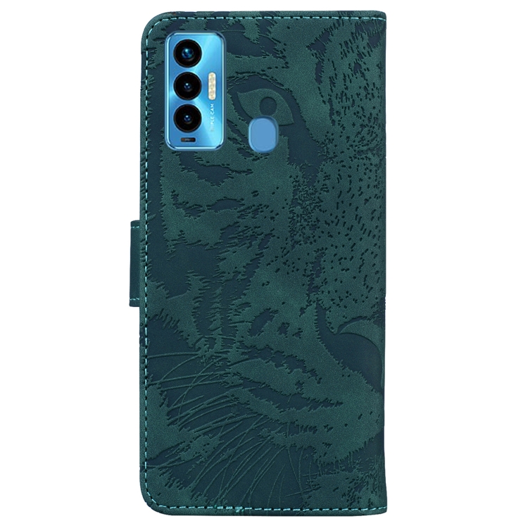 Funda Telefónica Cuero Flip Tecno Camon 18I Patrón Tiger Horizontal (Verde)