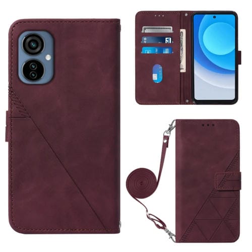 Funda Flip de Cuero para Tecno Camon 19 Neo Crossbody 3D En Relieve (Rojo Vino)