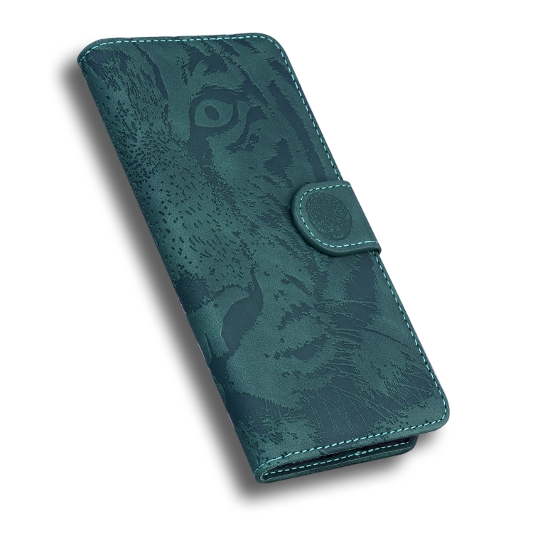 Funda de Cuero Flip para Tecno Camon 19 Neo Tiger con Relieve Patrón Horizontal (Verde)