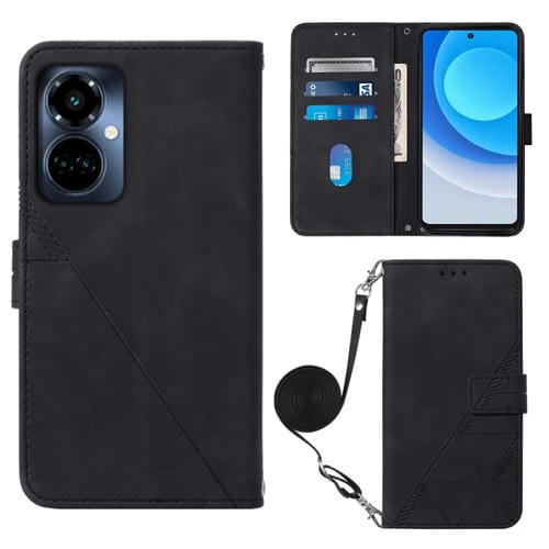 Funda de Cuero para Tecno Camon 19 Pro 5G Crossbody 3D con Tapa en Relieve (Negro)